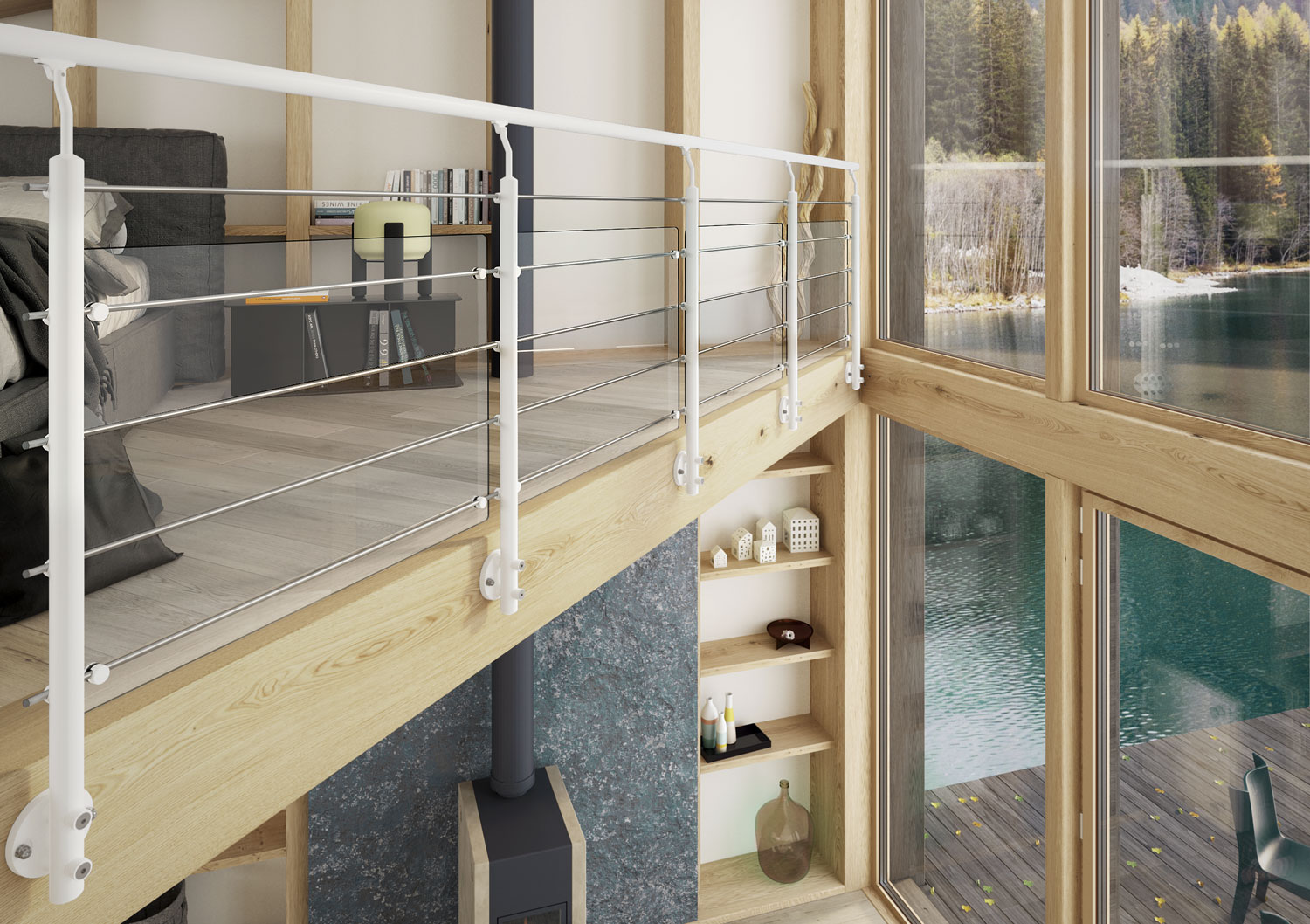 Le garde-corps en aluminium ROLO a un remplissage en tubes. Les remplissages en tubes offrent une esthétique classique et élégante.