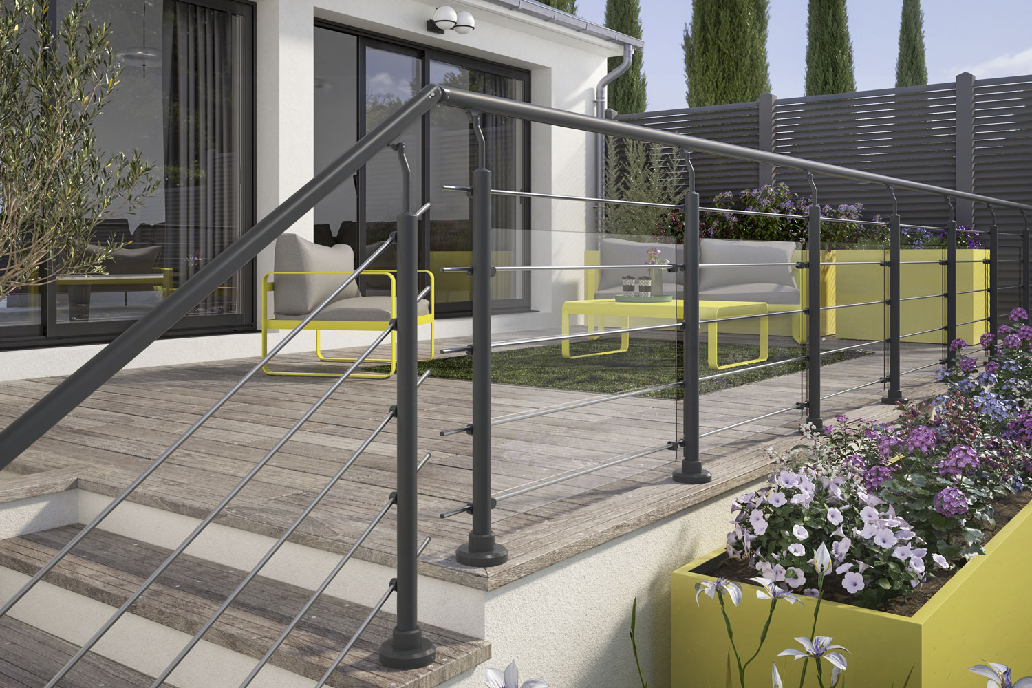 Découvrez notre superbe garde-corps en aluminium gris foncé, conçu pour allier sécurité, esthétique et durabilité.